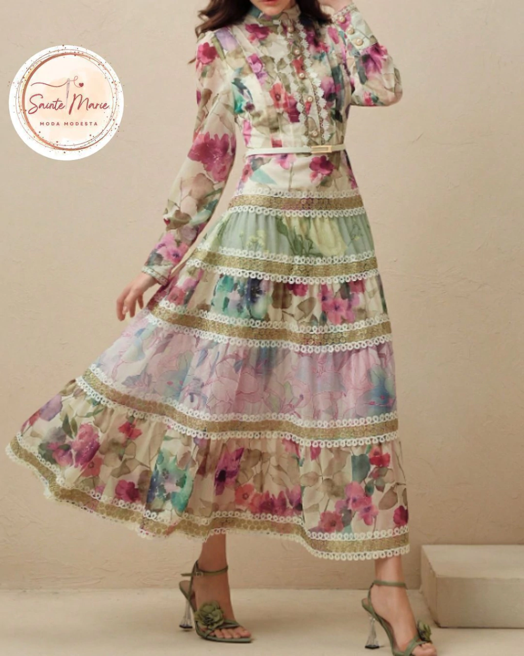 Em sintonia com a missão da Sainte Marie Moda Modesta, apresentamos este deslumbrante vestido , uma peça que une a sofisticação do estilo retrô francês à graça da modéstia e aos princípios de beleza da mulher católica.